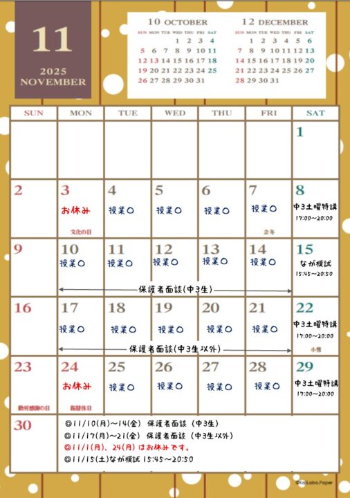 通常授業の他に追加の補講もありますので各自日程を確認してください。