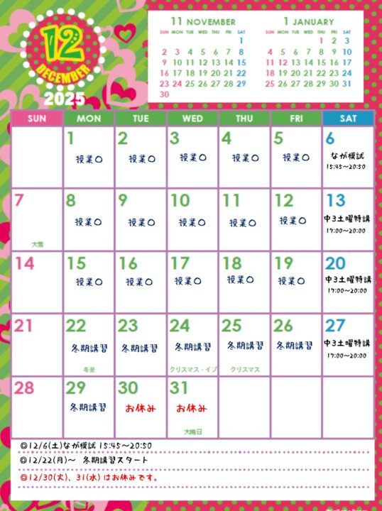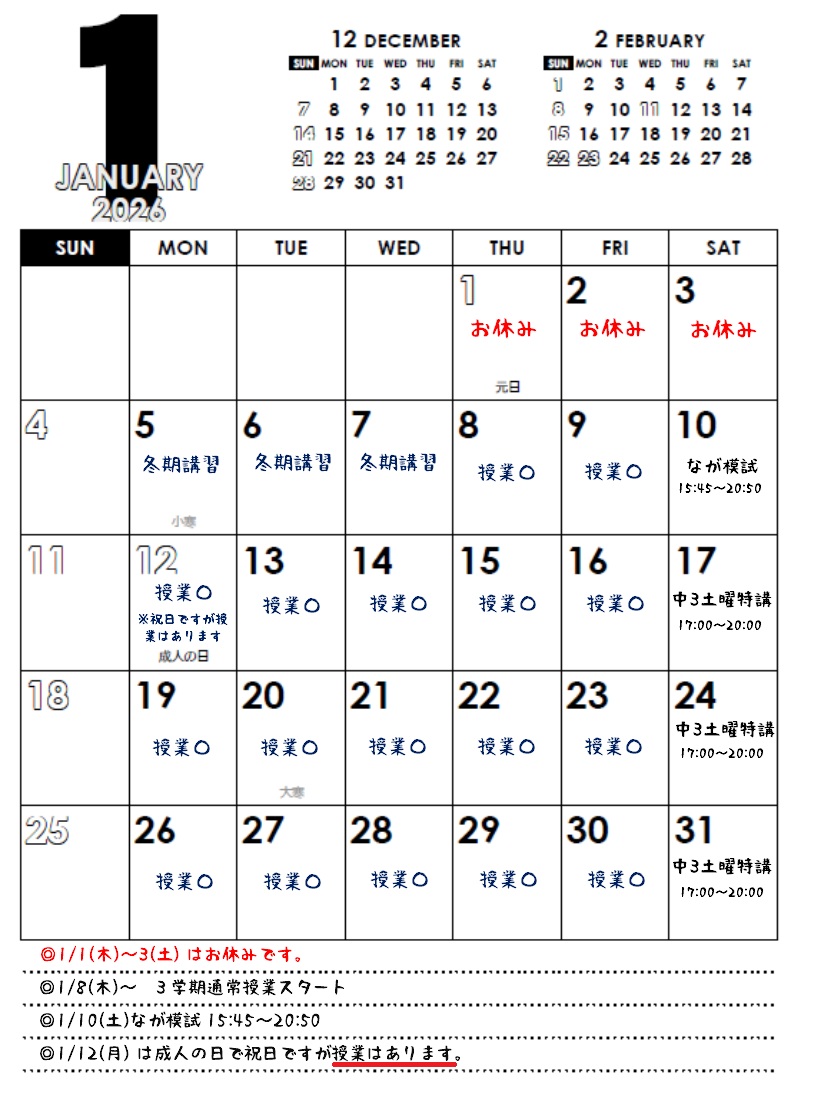 1月授業カレンダー